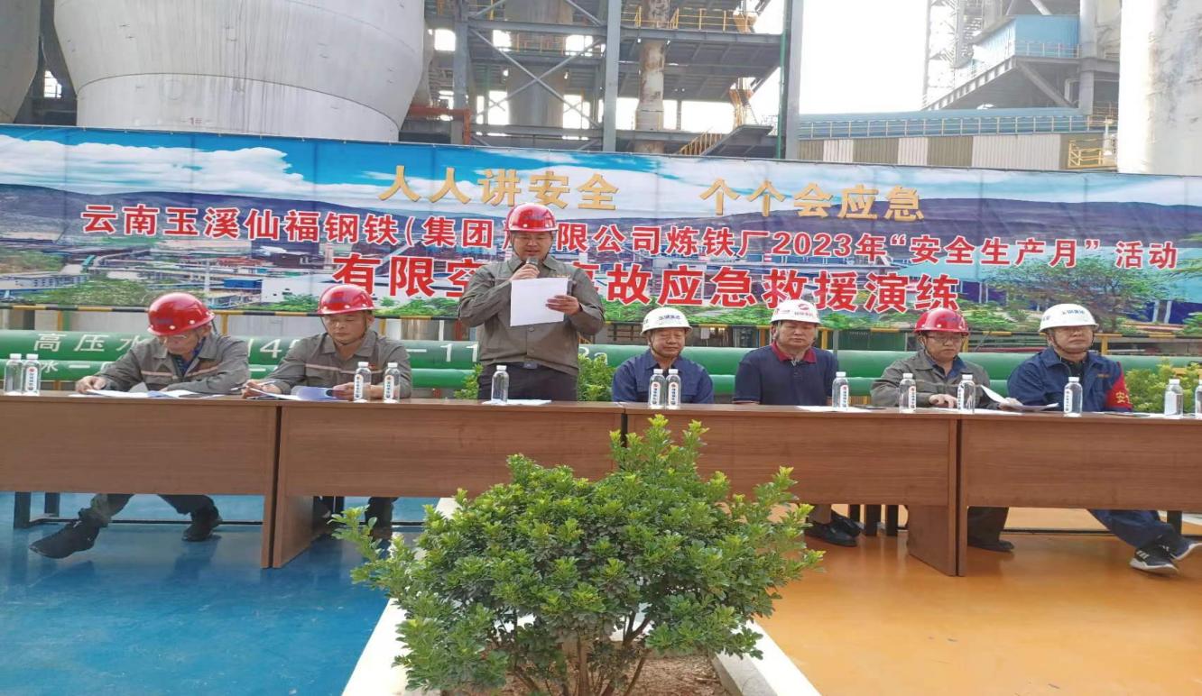 2023年仙福鋼鐵集團(tuán)黨委組織四個(gè)黨支部參加煉鐵廠有限空間事故應(yīng)急救援演練